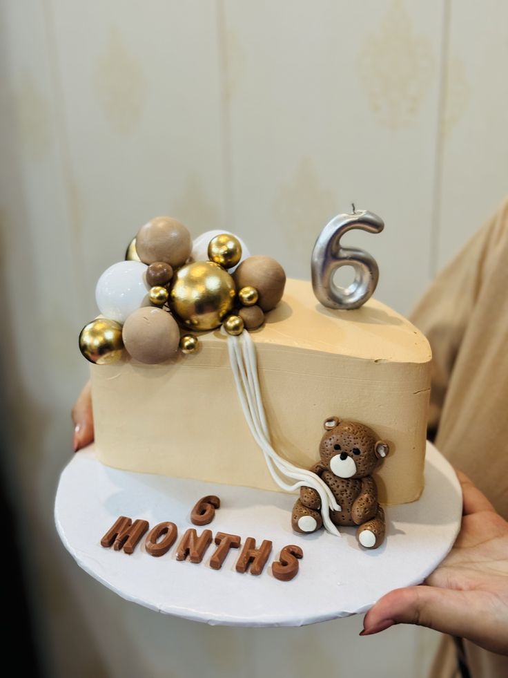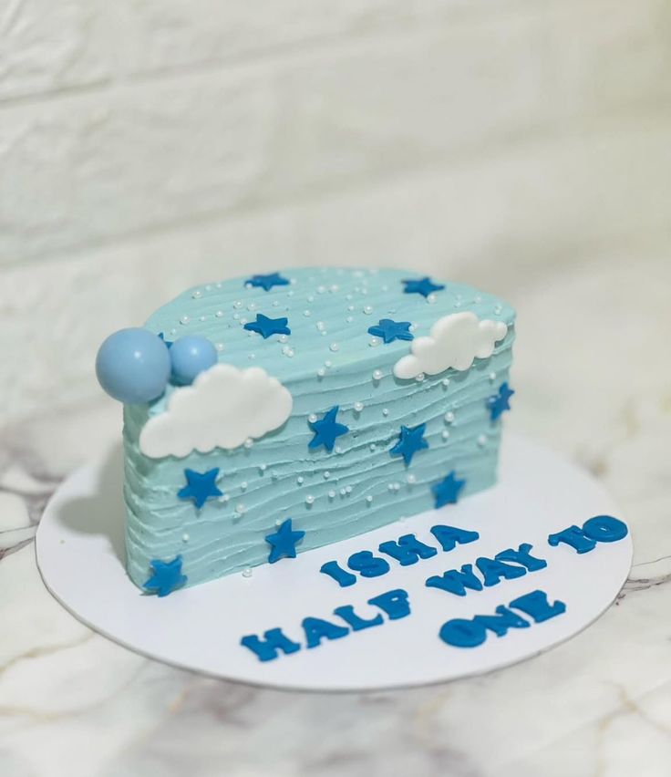 Cake completes the celebration; a half-cake designed in half-cut is a must for half-birthday. You can go creative with 6-months badge or half animated character etc.