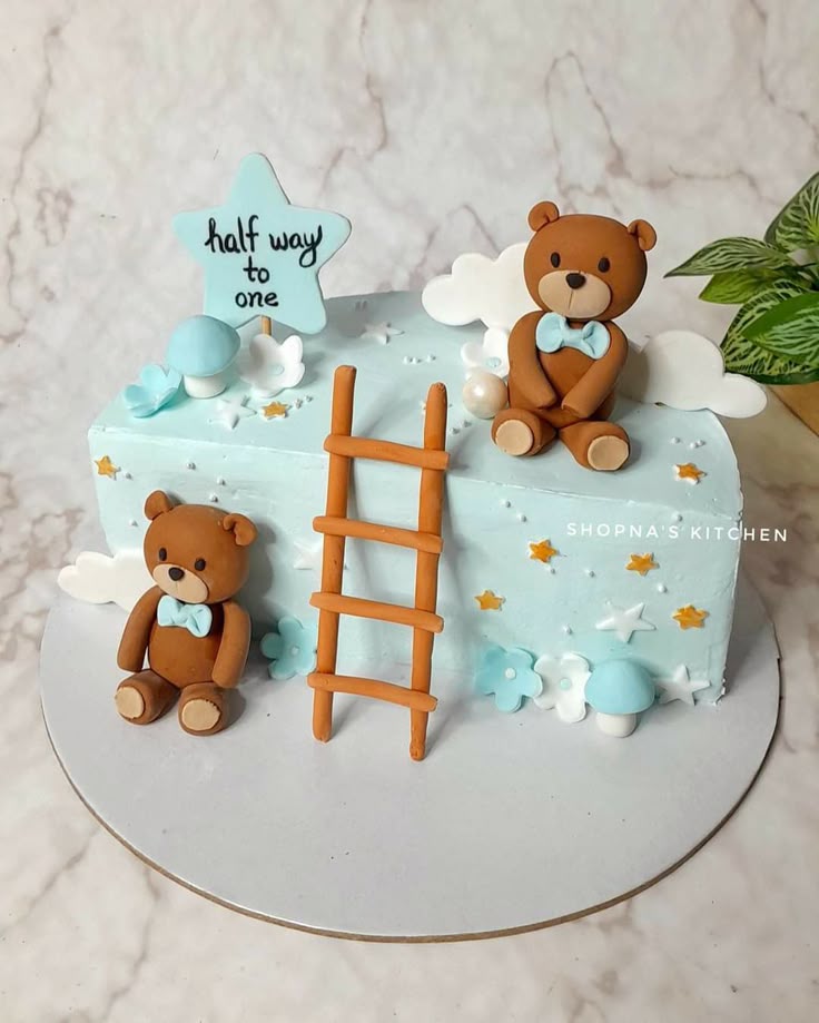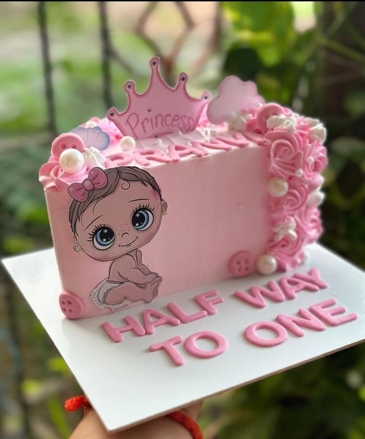Adorable toppers on pastel, soft shaded designed in half-star or animal is perfect for cutie babies. For adults or kids, creativity with half designed tiers, twirled or fondant-based characters are good choices. You can also plan half-circled cupcakes or half sugar coated fruits cake for celebration.